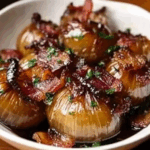 Honey-Glazed Shallots with Crispy Bacon – A Comforting Side Dish You’ll Want to Make Again and Again is a delightful blend of sweet and savory that will elevate any meal. This side dish shines during holidays, cozy dinners, or festive gatherings. With its rich flavor and appealing texture, it’s sure to become a favorite you’ll want to make repeatedly.